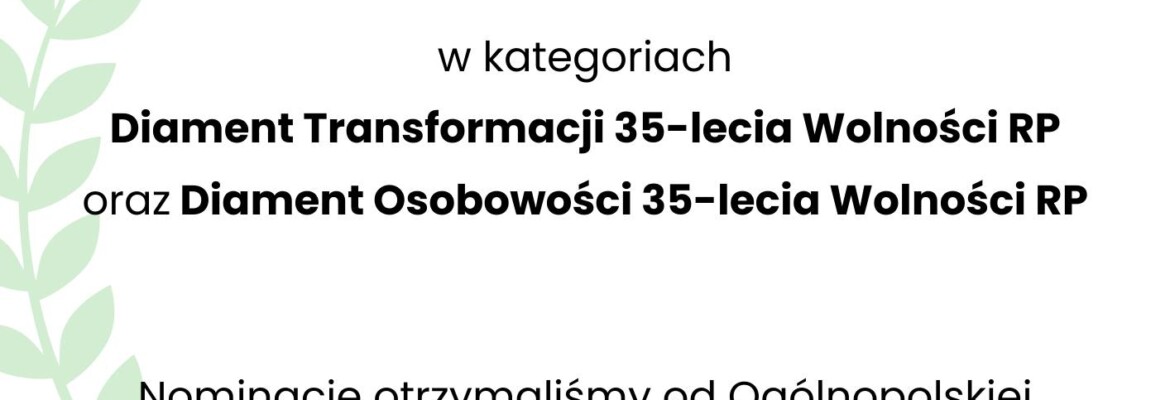Z nieukrywaną dumą ogłaszamy, że Insur Invest został nominowany do prestiżowych nagród Diament Transformacji 35-lecia Wolności RP oraz Diament Osobowości 35-lecia RP! Jest to dla nas ogromne wyróżnienie oraz dowód uznania naszego wkładu, trudu i wysiłku włożonego w budowę silnego przedsiębiorstwa. Jesteśmy dumni, że nasze 35 lat doświadczenia w branży ubezpieczeń i podążania wyznaczoną ścieżką, przynosi tak wyjątkowe efekty! Z tego miejsca dziękujemy naszym Partnerom, Klientom, a także pracownikom bez których ta nominacja […]