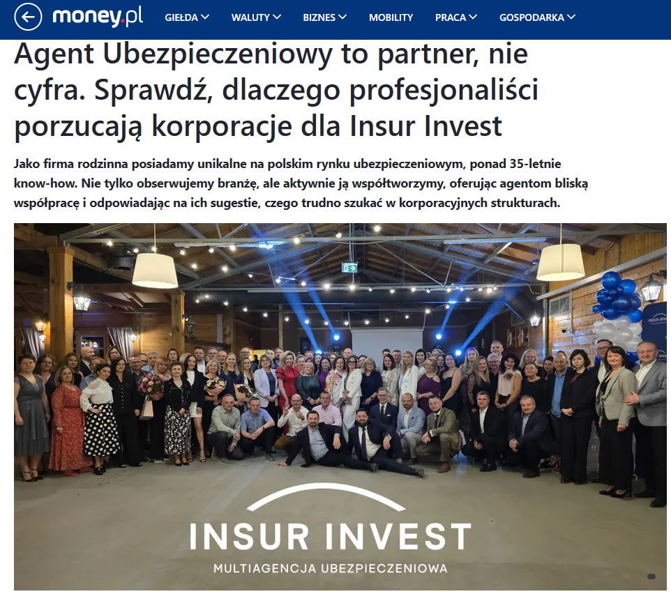 Czytaliście najnowszy tekst o Insur Invest na łamach Money.pl? Sprawdźcie dlaczego agenci ubezpieczeniowi wybierają Insur Invest jako Partnera do współpracy!