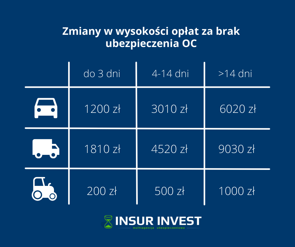 Zmiany opłat za brak obowiązkowego ubezpieczenia OC